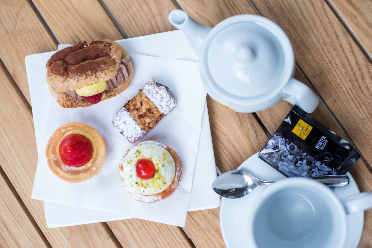 Cluttered between many shops at St.James street..this is a small but beautiful and calm place... The interiors are beautiful... They serve excellent bakery cuisine along with great coffees and teas... They serve pizzas, croissants, cakes, tarts, etc ...all fresh n tasty .. coffees and teas are made with love... Coffee consists of beautiful froth... The presentation at the outlet is very appealing... Service is also good... The quality and quantity is worth the price. Planning to visit soon ..